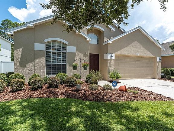 Welcome home! Gorgeous, a true four-bedroom, single story home with just under 2000 square feet of living space. All the big-ticket items have been taken care of NEW ROOF 2025 (transferrable warranty). HIGH-EFFICIENCY 24 SEER HVAC SYSTEM w/ HEAT PUMP 2021 (transferrable warranty), includes a top-of-the-line programable thermostat and a whole house air filter makes for cool summers and lower energy costs. Exterior Painted 2021. Water Heater installed 2022. This home is nestled on a charming tree-lined street of mature oak trees and sidewalks, perfect for morning walks. Mature lush landscaping greets you as you walk up to the home. As you enter, there is a vast open living room and dining room, perfect for lively gatherings or a quiet space to relax. The heart of the home is the open kitchen and family room as they seamlessly flow together. The eat-in kitchen is a chef's delight, boasting ample storage with numerous 42-inch wooden cabinets, a large pantry closet and a kitchen island with electrical outlets for easy meal prep. A brand-new side-by-side refrigerator, installed in 2024, is also included. The newly updated primary suite is a true retreat. The primary bedroom has new porcelain flooring that flows into the large walk-in closet and ensuite. The ensuite is a masterpiece of modern design, featuring new porcelain tile floors and a luxurious zero-step walk-in in shower with sleek, frameless glass. The new vanity boasts stone countertops, dual undermount sinks, and abundant storage, while a dedicated linen closet provides even more space for your essentials. Bedrooms, 2, 3, and 4 are located on their own wing, separate from the primary suite. They share a large bathroom with dual sinks and a shower-tub combination. There is porcelain tile through-out the home with carpet in bedrooms 2 and 3. Ceiling fans are through-out the home including all bedrooms. Step out and enjoy the Florida lifestyle from your spacious covered and screen-enclosed 12' X 28' Porch which backs to conservation and a pond. Sit back and watch all the wildlife, Deers, wild turkeys, birds, turtles, and occasionally otters swimming in the pond. The low-maintenance artificial turf, installed in 2022 in the backyard, ensures a clean, manicured look year-round. The yard is enclosed by a vinyl fence with three access gates, and a cantilever umbrella provides extra shade when you need it. Need extra storage for your lawn equipment? There is a storage shed included, too. Double paned windows are through-out the home. Exterior security cameras, a Nest doorbell and inside motion detectors are included. Monitoring is an additional cost if wanted. HOA QUARTERLY FEE $521.00 includes Spectrum High speed internet and Cable TV that includes Disney+, HBO MAX, Paramount, and Peacock and a whole house DVR. Community heated pool, playground, trash pick-up twice a week, that includes a big blue toter, and recyclables twice a month, common areas and ponds. This community has quick access to the Suncoast Parkway. Restaurants, shopping, hospitals and medical facilities are nearby. No Flood Insurance Required! No CDD fees. Seller can close quickly.