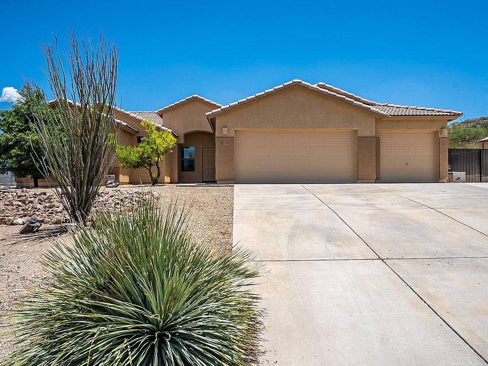 * VIEW VIDEO: https://az.movinghometour.com/22013809_Tucson%20MLS * Clean and bright 3 bedroom 2 bath plus den, 3 car garage 1,869 sq. ft. home on 1 acre lot. Eat in kitchen with granite, pantry, center island and storage galore! Spacious master suite has dual sinks, large walk in shower and closet. Laundry room, ceiling fans, window coverings and garage shelving units. Growers delight walled in backyard includes large patio, fruit trees, raised garden bed, storage shed all with beautiful mountain views. TWO easily accessible double gates make parking your boat and RV a breeze. Close to I-10 and located within the Award Winning Vail School District.