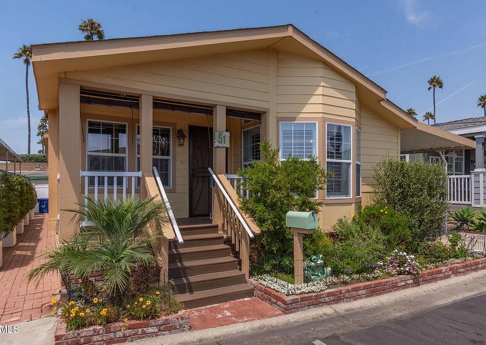 Discover your coastal oasis in Ventura Marina Park! Experience the best in 55+ coastal living with this move-in-ready 3-bedroom, 2-bathroom home. Spanning 1,456 square feet, this beautifully maintained residence boasts nearly $70,000 in upgrades, showcasing true pride of ownership.Step inside to discover vaulted ceilings and plenty of natural light that create a bright and inviting atmosphere. The spacious kitchen is a true delight, featuring modern stainless steel appliances, a breakfast bar, and a cozy breakfast nook. Additionally, there are separate dining and living areas for added convenience. The large primary suite includes a walk-in closet and a renovated bathroom with double vanities and a step-in shower. The two additional bedrooms offer flexible space that can accommodate guests, serve as a home office, or be used for your favorite hobbies.The exterior of the home is equally impressive, showcasing a welcoming porch and a beautiful, low-maintenance front garden, side jasmine planters and automatic sprinklers, along with a widened carport for added convenience. Recent upgrades include new flooring, fresh paint both inside and outside, and a modern Daikin heating and cooling system.Experience comfortable and affordable living with a rent-controlled lease at just $811.55 per month, along with exceptionally low property taxes that ensure long-term value. Located near Ventura Harbor Village, this vibrant community offers a resort-style lifestyle featuring a heated pool, hot tub, new fitness facility, clubhouse, and a tranquil lake. Enjoy an active social calendar filled with various clubs and classes, including yoga, golf, bingo, and more.Don't miss this chance to own a stunning beach house at an incredible price. Pets are welcome! Find your new home at 1215 Anchors Way Dr. #51, Ventura. See it for yourself.