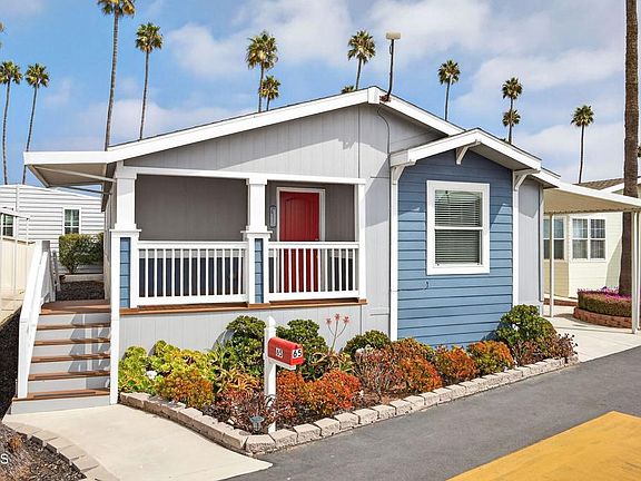 Your beautiful beach home awaits! Like new, gorgeous and move in ready! This home has everything you need starting with the welcoming front porch, perfect for fresh air as you relax taking in the ocean breezes. With 3 bedrooms and 2 baths this home offers space and light with a great floor plan separating the two guest bedrooms from the spacious primary suite. The heart and center of this home is open, bright and welcoming with a large kitchen island that flows seamlessly into the living area complete with a beautiful remote controlled fireplace. The kitchen is an entertainer's delight with lots of designer cabinetry, stainless appliances, kitchen island and a breakfast area. Thoughtful details include crown molding, recessed lighting, solar tubes, high ceilings, decorative ceiling fans, stylish pendant lighting as well as window blinds and cornices. The primary en suite has two large closets, a walk in shower and dual sink vanity. A large laundry room with ample storage adjacent to the kitchen leads to the carport entrance. Outside you will find tandem, covered, carport parking, a shed for extra storage and a small back yard area. Marina mobile home park is one of the most desirable 55 & better communities and offers an abundance of resort style amenities. Enjoy a heated pool and spa, gym, extra large clubhouse with stage and resort style kitchen. A gathering room with a with fireplace, view of the lake, billiards, card room, library and even a car wash area. There are many community events year around. Just steps away is the Ventura Harbor and beaches with dining, entertainment, boating, walking paths, shopping, etc. Home doesn't get much better than this for coastal living. You will love living here!!