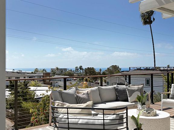 Wake up to breathtaking views and end your day with glowing sunsets over the ocean- this remodeled North Pacific Beach home captures the essence of coastal living. Step into a home that feels brand new, blending modern upgrades with timeless comfort. This 3-bedroom, 2-bathroom stunner includes a versatile bonus room—perfect as an office, den, formal dining space, or easily converted into a 4th bedroom. Every inch of this home has been thoughtfully renovated, from the new roof, HVAC, to the custom cabinetry, updated bathrooms, tile flooring, fixtures, and even a freshly rebuilt chimney that brings warmth and character to the main living area. At the heart of the home, the open-concept kitchen boasts panoramic southwest-facing views through a large picture window that perfectly frames the ocean, bay, and treetop horizon. Whether you’re cooking dinner or entertaining guests, you’ll enjoy a seamless connection to the outdoors. The living and dining rooms share this same spectacular vista, opening directly to an expansive deck—ideal for sunset dinners, weekend lounging, or gatherings with friends. Beyond beauty, this home is designed for convenience and peace of mind. The gated front entry leads into a tranquil, private courtyard, creating a true indoor-outdoor sanctuary. Drought-tolerant landscaping, drip irrigation, automatic landscape lighting, and low-maintenance hardscaping make this a perfect lock-and-leave property—whether you’re a full-time resident or a part-time coastal retreat seeker. Inside, an abundance of smart storage sets this home apart: custom built-ins in the dining area, multiple hall closets, a California Closet–designed primary suite, and a spacious garage offer room for everything—and then some. Located in the highly walkable and coveted community of North Pacific Beach, you’re just minutes from the sand, top-rated schools, grocery stores, boutique retail, and vibrant cafes and restaurants. This is a rare opportunity to own a high-quality home with stunning views in one of San Diego’s most desirable coastal neighborhoods!