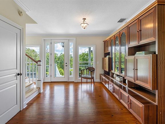 This remarkable Terra Ceia Island home stood strong through recent storms—Debby, Helene, and Milton—thanks to its elevated first floor, approximately 16 feet above ground level, providing lasting security and peace of mind. Embrace the charm of Old Florida living at 1215 Bayshore Drive, a custom waterfront residence built in 2000 featuring 4 bedrooms, 3.5 baths, and over 3,000 sq. ft. of beautifully crafted living space on 3.25 acres of serene waterfront property. A picturesque drive and lush landscaping lead to a welcoming front porch that highlights the home’s quality construction. Inside, natural light and tranquil views fill the open floor plan, where the great room, dining room, and foyer open to a screened back porch through elegant French doors. A flexible bonus room serves perfectly as an office, playroom, or TV room, complemented by a convenient half bath. The chef’s kitchen showcases custom wood cabinetry, granite counters, a gas range, stainless steel appliances, and a unique antique marble-topped oak island. A cozy breakfast nook and oversized laundry room—with a 1920s cast iron farm sink and walk-in pantry—add practicality and charm. A guest ensuite on the main level features a walk-in closet and stylish bath with beehive tile flooring and walk-in shower. Upstairs, the spacious primary suite offers a walk-in closet, updated spa bath with Jacuzzi tub, open shower, and dual vanities. Two additional bedrooms and a full bath complete the upper level. Notable features include custom millwork, ceiling fans throughout, a whole-house vacuum system, alarm system, and framed space for a future elevator. The ground level provides two covered parking spaces, a mudroom, and ample storage areas. Outdoors, enjoy a 23' x 24' air-conditioned workshop/studio with attic storage, a freshwater pond with artesian well, a fenced vegetable garden, solar-powered gate, and multiple parking options for vehicles or boats. Follow the 125-ft boardwalk to the observation deck for kayaking or fishing adventures. Ideally located near Sarasota, Bradenton, St. Petersburg, and Tampa—and minutes from the Gulf beaches—this property offers the perfect blend of tranquility, craftsmanship, and coastal accessibility. Experience the timeless appeal of Terra Ceia Island, home to Florida’s oldest continuously operating civic association. For more information: https://www.terraceiavia.com