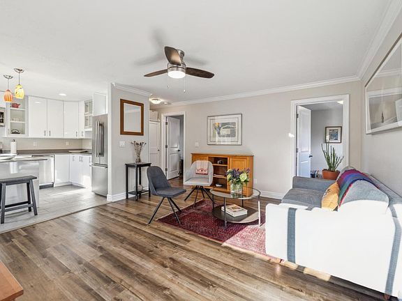 Welcome to this fantastic ground floor corner unit nestled in the desirable, tree-lined Willow Glen neighborhood of San Jose. This boutique 12-unit community offers the perfect blend of tranquility and convenience, with downtown Willow Glen's vibrant restaurants and shopping just a short walk away. This smartly designed home features two versatile rooms, one of which is a dedicated bedroom, while the other can be used as a bedroom, office, or den. The newly remodeled eat-in kitchen is a delight, boasting new stainless steel appliances, attractive European style lacquer cabinets, and quartz countertops. The bathroom has been thoughtfully renovated to include a generous shower, providing a spa-like experience. Additional features of this unit include a private entrance, a walk-in closet, and the convenience of an in-unit washer and dryer. Parking is a breeze with assigned parking. A dedicated storage room offers extra space for all your belongings. Situated near major transportation routes and highways, this home offers an easy commute to various destinations. Experience the charm and convenience of Willow Glen living in this must-see home.