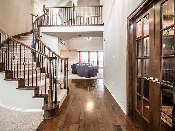 Gorgeous well maintained home sits on almost HALF AN ACRE LOT with outstanding curb appeal! As soon as you open the door you see the stunning curved iron staircase & private office-study. The living areas have 2-story ceilings & balconies overlooking the elegant floor to ceiling fireplace. The first floor master suite has a luxurious bathroom & amazingly spacious walk-in closet. The gourmet kitchen features granite countertops, double ovens & gas cooktop made for entertaining. Upstairs you have an additional living area, media room & 3 bedrooms. Enjoy your evenings outside under the covered patio overlooking your huge backyard. All of this situated close to shopping & dining. This home has it all so hurry!