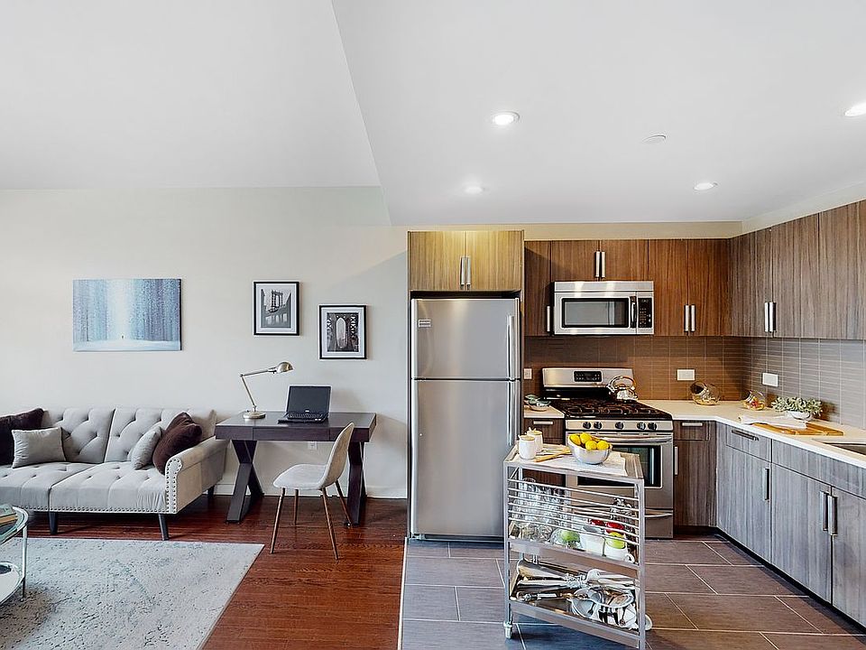 Oversized windowsFull-height backsplashesIn-unit washerSpacious closetsBespoke modern cabinetryDark oak flooringWhite quartz countertops