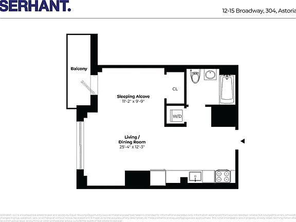 Sleek hardwood floorsIn-unit washer and dryerStainless steel appliancesPrivate balconyLarge alcove studioLarge windowsModern kitchen