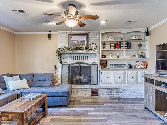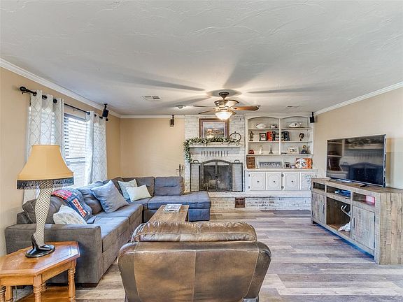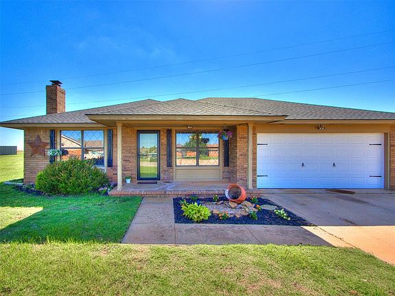 Such a great house on a big lot in cul-de-sac! Three bedrooms, two bathrooms, open dining and living area with large front windows that bring in lots of light! Built in cabinets in the living room with wood burning fireplace, and the master has his/her closets. Oversized two car garage with a small shed in the back for additional storage. There is also extra parking space for rec vehicles! Large back patio with firepit perfect for outdoor entertaining. Just west of the Kingfisher high school and junior high, in the Vancoe addition!
