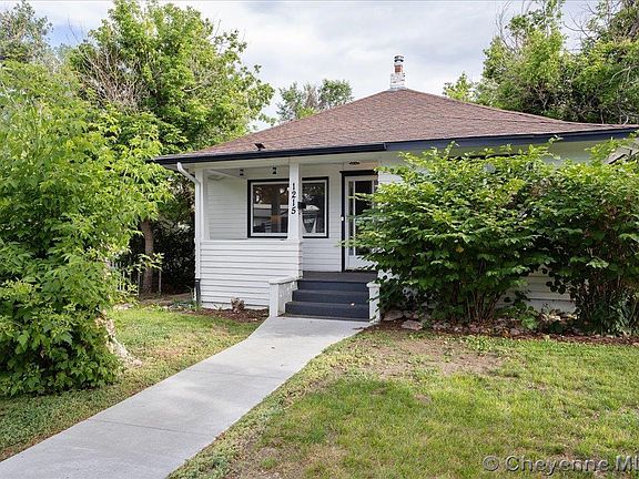 Charming ranch-style home located near FE Warren Air Force Base and historic downtown Cheyenne. A welcoming covered front porch. Metal siding exterior. Efficient floor plan with two bedrooms, one bath, and one car detached garage with alley access. Updates throughout include luxury vinyl plank flooring, vinyl windows, freshly painted interior, updated kitchen, and updated bathroom. Stainless kitchen appliances, washer and dryer included. Basement is unfinished. Back yard is fully fenced. Entire lot is approximately 5,000 square feet. Less than a block from Pioneer Park Baseball Field and Recreation Area. A delightful place to call home.