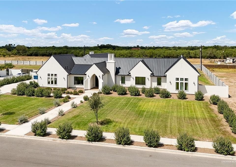 Remarkable residence located in the newest gated subdivision the Estates on Bryan in Palmhurst. Set on 1 acre of beautifully landscaped grounds, this home lends architectural elegance with everyday functionality. Clean lines, airy interiors, and tall ceilings enhance the spacious feel, while oversized windows and doors bathe the home in natural light. The open concept layout highlights a stunning kitchen with custom cabinetry and a large island, ideal for both daily living and entertaining. A transitional room provides flexibility for a home office or the option to convert into a fourth bedroom. With its expansive lot, the property offers privacy and plentyof room to enjoy. Combining ample square footage, modern design, and thoughtful details, this contemporary home is truly a rare find. All just minutes from shopping, dining, entertainment, and schools.