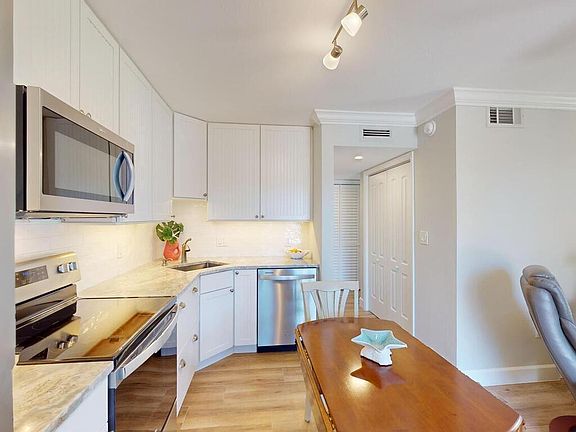 Completely remodeled and ready to make your own! Paradise awaits you at this 1st floor coastal, bright, and light 1 bedroom/ 1 bathroom condo just steps to the Marco Island River! Upgrades include high quality cabinets, subway tile backsplash, beautiful white granite with unique grains, stainless appliances, and a deep stainless sink. The new tile floors are throughout the condo and have a wood look finish. The bath has a glass door shower with pebble finish on the floor. All windows and sliding doors are hurricane rated and impact resistant; both sets of sliding doors have plantation shutters. Be sure to enjoy your stackable laundry right inside the condo! This immaculately maintained condo is being sold furnished. Enjoy the open patio concept with view of a large yard, perfect to take in the sunny Florida lifestyle and offering great privacy. Docks may be available for lease. Several popular restaurants are located nearby and close to our award-winning beaches, shopping, library, museums, and everything that we love about island life.
