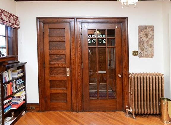 Occupying a prominent corner in one of Peekskill's most distinctive locations; this delightful Colonial style house is surrounded by tranquil gardens and shaded by flowering trees. This 1920's historic house has undergone many thoughtful renovations retaining its original features. An entry library greets you with fireplace, Oak floors laid on the diagonal and solid oak pocket doors separating the living and formal dining room. Enjoy your yard from the side porch off living room Eat in Kitchen which leads to rear deck. Lovingly restored windows and crown moldings add a timeless elegance to this beautiful house. An intricately carved staircase leads to three bedrooms; office/study and a small balcony. All floors on the second and third level are original cherry wood. Full size basement and a two car detached garage. A short walk to Depew Park w/ 5 tennis courts, Olympic size swimming pool, fishing and ice skating in Lake Mitchell, two running tracks, wooded trails and a new playground.