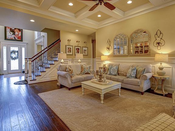 Transitional home in Founders Pointe offering impressive Entry Foyer to rear luxury porch w/gas fireplace, amenities seldom seen.1st flr guest suite,10' & 11' coffered ceilings,gourmet kit w/granite,dbl ovens,huge bar & keeping rm,media rm,3Car gar,stamped concrete porches/driveway.See virtual tour.