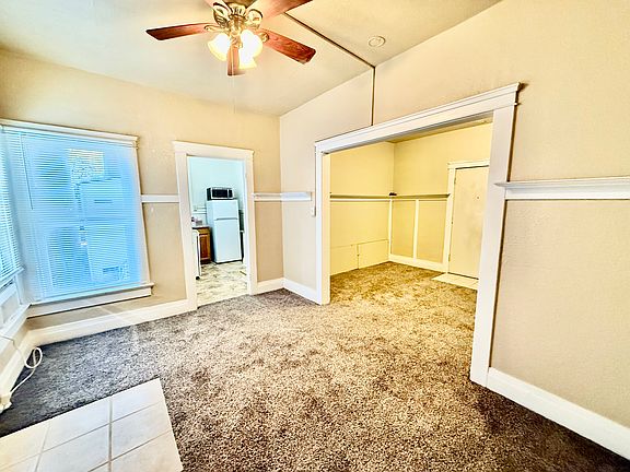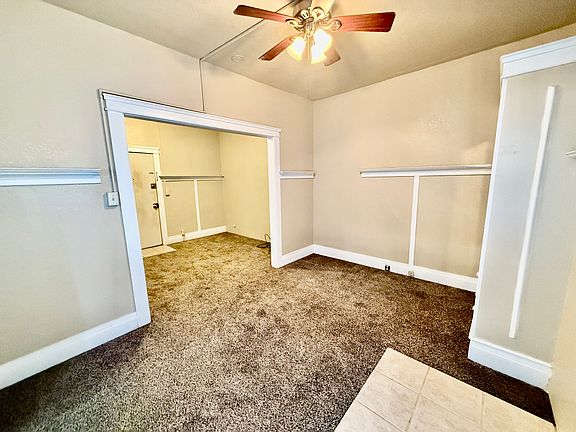 Charming lower-level studio in a classic Modesto building with secure shared entry. This unit has a flexible floorplan with two separate living zones enough space for a defined sleeping area and a living / desk area. Neutral carpet and tall walls keep the space feeling open and quiet.