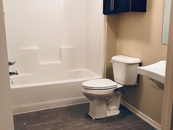 Now Available! Beautiful 2 bedroom, 2 bathroom quadplex! Total electric home featuring double pane windows, washer/dryer hookups and wood vinyl flooring throughout! Enjoy the large living area and fully equipped kitchen with refrigerator, dishwasher, microwave, stove/oven, garbage disposal, and pantry! A breakfast bar separates your kitchen and dining area. Large master bedroom with on suite full bath! This home includes another full bath down the hall and the second bedroom includes a walk-in storm shelter in the closet! The patio with additional storage is an added bonus! The property pays for water/sewer/trash and also takes care of all the mowing. As a resident you will also enjoy use of the community room for parties or gatherings, a pavilion, and two playgrounds the kids will love. This home is located in Serenity Park Homes II, a community you will be proud to call home!