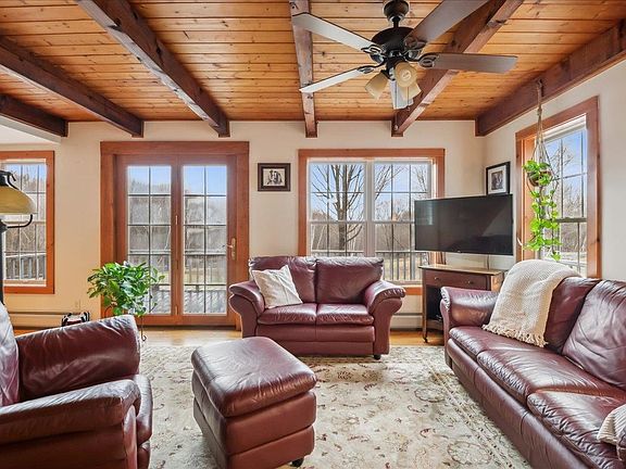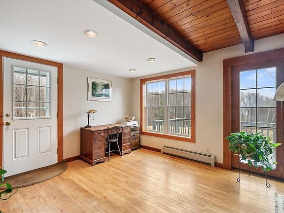 Nestled in the peaceful Vermont countryside, this quaint 2-bedroom home offers a perfect blend of rustic charm and convenience. Situated on 4.2 acres, the property is surrounded by stone walls and includes a detached, insulated 2-car garage with a workbench, wood stove, and a full attic, plus a 1-stall barn—ideal for hobby farming or storage. Just inside the home, the mudroom entry has coat hooks, a bench and a storage closet for all your outdoor gear. The open-concept kitchen and living room create an inviting atmosphere, perfect for entertaining or cozy evenings at home. Exposed wood beams and warm wood detailing throughout enhance the home’s rustic appeal. A set of French doors in the living room leads to an expansive L-shaped deck, where you can relax and take in the beauty of your surroundings. The bathroom features a cast iron tub/shower with a beautifully crafted wood-paneled surround. Upstairs, you’ll find a spacious bedroom with an additional area that can serve as a home office, reading nook, or creative space. The lower level boasts a second bedroom with a walkout egress, providing privacy and easy access to the outdoors. Enjoy the serenity of private Vermont country living, while still just 20 minutes from downtown St. Albans with shopping, dining and more. If you’re looking for a peaceful homestead or a place to embrace a Vermont lifestyle, this property is a true gem! Don’t miss your chance to own this charming slice of Vermont!
