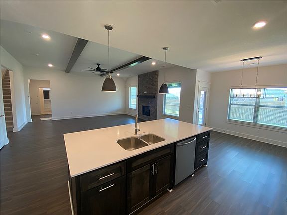 Discover your dream home in South Pointe Subdivision in Tontitown, where luxury meets convenience! This beautiful home offers a community pool, pavilion, and playground within the neighborhood. Close to Arvest Ballpark, I-49, Arkansas Children's Hospital, Sam's Club, and countless restaurant ensure an ideal location. This 4 bedroom residence features a split floor plan with 3 bathrooms, boasting granite countertops. living room beams, custom trim, and a gas fireplace. Enjoy the eat-in kitchen with a dining area, a large center island, and LED cabinet lighting. Step outside to the covered back porch perfect for relaxation. LVP flooring in living room to be replaced by seller.