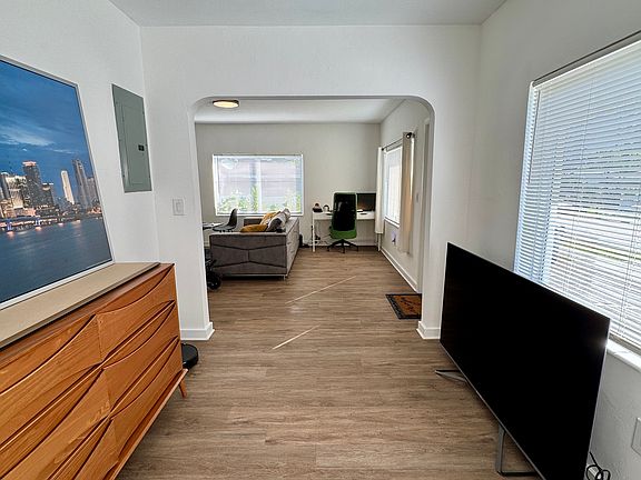 Upgraded unit just two blocks from Biscayne! This bright and spacious home features 2 bedrooms, 1 bathroom, and a versatile den or office space. Recently updated with new flooring and freshly painted throughout, it offers a modern and inviting feel. Enjoy a new kitchen with granite countertops and stainless steel appliances, including a range/oven, microwave, refrigerator, and dishwasher. The unit includes two assigned parking spaces right in front and a beautiful private patio perfect for relaxing. Additional highlights include impact doors and windows, plenty of natural light, internet and water included, and a laundry room conveniently located in the building.