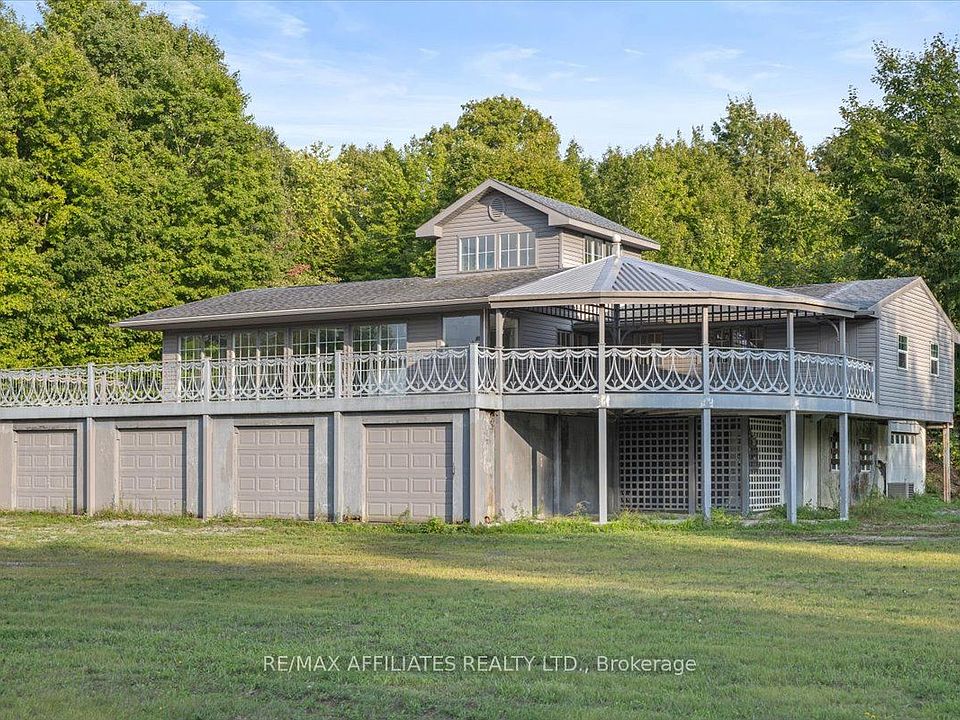 Create your own piece of paradise on Big Rideau Lake. Located along Narrows Lock Road, where the Big Rideau connects with the Upper Rideau, this property offers an unmatched lifestyle of boating, fishing, and waterfront views. Nestled on an expansive lakefront lot surrounded by mature trees, this home provides stunning views, and endless opportunities to enjoy the outdoors.The elevated design features a wraparound deck with wrought-iron accents, perfect for relaxing with morning coffee, entertaining guests, or watching breathtaking sunsets over the lake. Inside, the bright open-concept floor plan is flooded with natural light from oversized windows, showcasing panoramic views of both the lake and surrounding forest. With three bedrooms and two baths, plus a versatile loft space that can serve as a home office or guest suite, this retreat offers both comfort and flexibility.Unique to this property are the spacious lower-level garages, providing ample room for vehicles, boats, and recreational toys, along with a workshop and plenty of storage. A covered bridge-style walkway creates a dramatic and welcoming entrance, setting the tone for this remarkable home. Offering privacy, natural surroundings, and year-round potential, this waterfront retreat is ideal as a cottage getaway, an investment property, or your forever home.