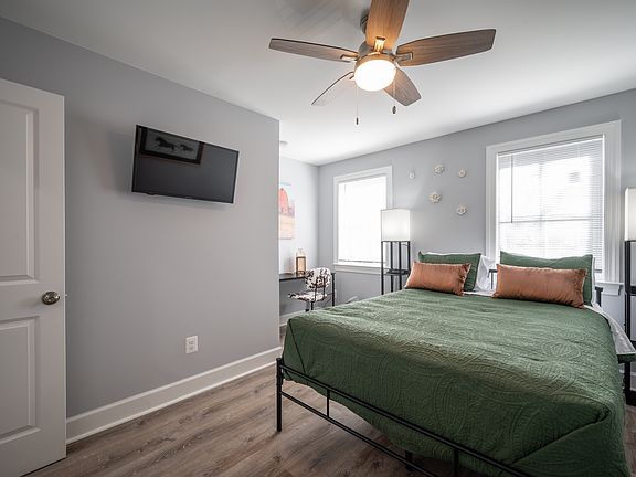 Fully fenced in backyard with pet turf and seating for 4 at the table and chairs. Front yard has grass area with bench and tables. The parking is right out the back gate and can be accessed through an alley off N. Payne St. There is a reserved off street parking spot.
