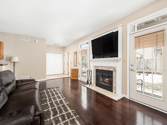 LOCATION! LOCATION! FANTASTIC FIRST FLOOR END UNIT RANCH HOME! LIGHT AND BRIGHT! 9' CEILINGS! LIVING ROOM W/NEWER ENGINEERED HARDWOOD FLOORING W/FIREPLACE & DUAL DOORS TO PATIO! LARGER KITCHEN W/EAT-IN AREA, SS APPLIANCES, LOTS OF CABINET & COUNTER SPACE, PLANNING DESK & ENGINEERED HARDWOOD FLOORING! HUGE MASTER W/SITTING AREA & BARN DOOR TO TWO CLOSETS & REMODELED BATHROOM W/WHIRLPOOL, SEPARATE SHOWER & DUAL SINK VANTY! FRENCH DOORS TO DEN/2ND BEDOOM! 2ND BEDROOM/DEN & MASTER BEDROOM OVERLOOKS LARGE GREEN SPACE! 1 CAR GARAGE! LOTS FRESHLY PAINTED! WASHER & DRYER INCLUDED! AWARD WINNING DISTRICT # 204 SCHOOLS! JUST MINUTES FROM DOWNTOWN NAPERVILLE, METRA, SHOPPING, EXPRESSWAYS AND MORE! WELCOME HOME!