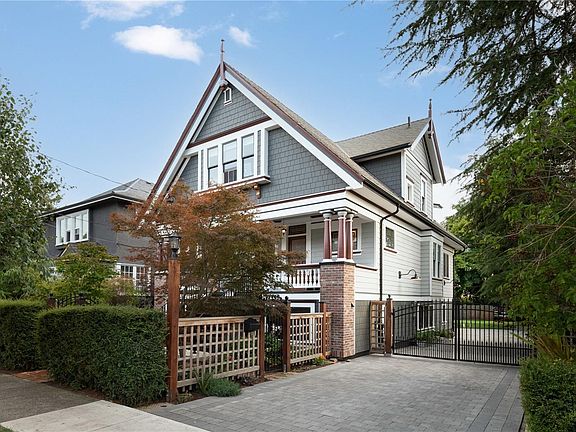 Grand Dame of Fairfield. Elegantly dressed & impeccably appointed, this Victorian home has been extensively restored. An exhaustive list of updates include lifting the home onto new foundations. Beyond the hedge & front gate, a large porch is an inviting entry. The front parlour opens onto a formal living room with stained glass windows & natural gas fireplace. The gourmet kitchen with Fisher & Paykel appliances is adorned with maple & fir cabinetry, copper apron sink, soapstone countertops, mosaic tile & adjoining butler's pantry with antique cabinetry.Step out to a huge deck overlooking the south-facing backyard.Upstairs, a huge primary retreat has a vaulted ceiling, ensuite bath & ample closets, plus 2 more bedrooms & bathroom.Lower level with 8'10" ceilings has a legal 2-bed suite plus flex room & hobby area.Restored to its original design, the exterior was reclad with durable 'Hardie' shingles & fir trim in the original paint palette.An ideal, quiet location with walk score of 90.