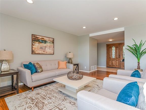 With stunning 180 degree views of the Conejo Valley & a flat yard with a sparkling pool, this move-in ready single story beauty in the coveted Kevington Estates neighborhood offers a newly remodeled interior with a fantastic floor plan, thoughtful updates, designer color choices, & more. The kitchen features solid oak cabinetry with new stainless appliances including double oven & dishwasher, stunning glass range hood, & even a wine refrigerator along with beautiful solid surface countertop & TONS of storage. High-end all-wood double paned windows with built in blinds allow you to control the light level easily. The master suite includes a very spacious bedroom & an updated master bath including new frameless shower with pebble accents & a trendy barn door plus tons of closet space. Three other bedrooms (including a VERY large one) share a double vanity bath with new lights & solid surface counter. The family room has easy access to the pool & a full length used-brick fireplace with a perfect spot for your big flat screen TV. Smooth ceilings with recessed lighting in both the family room and living room, new carpet in all four spacious bedrooms & the family room & new hardwood flooring in the living & formal dining room gives you the freedom to move right in & enjoy this wonderful home. Perfect for entertaining with a gas fire pit in the backyard along with the pool & mature grapefruit, orange, Mexican lime, and lemon trees with lots of fruit! Newly termite tented too!