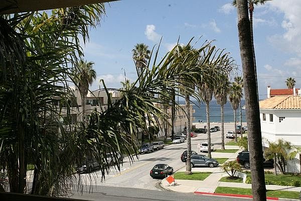 Luxurious upgraded extra large 2 bedroom 2 bath corner apartment with ocean view and very large balcony - just steps from the sand. Located in a very desirable upgraded building. the apartment was recently upgraded with custom granite counters in the kitchen and bathroom, travertine marble floors in the kitchen, light fixtures, etc.. Kitchen has custom near new cherry wood cabinets. The unit has lovely hardwood flooring in the living room and bedroom. There are double paned vinyl double paned windows which provide additional noise and energy efficiency. Unit has a large balcony with terra cotta floor tile. There is a good looking wet bar with granite counter and custom cherry wood cabinets. The limited access building has been upgraded by a decorator to provide an upscale resort-like feel. There is a large laundry room with personal lockers for supplies, a gym with professional grade equipment, an elevator, lovely lobby with hand painted mural, good looking courtyard with quartz tile, a sauna and a shower, as well as a beautifully decorated recreation room with a pool table, card table, living-room type furniture and a large screen TV. The building also has a roof top sundeck with an unobstructed ocean and Palos Verdes View. The monthly rent is $50 additional with a cat and $95 additional with a small dog.