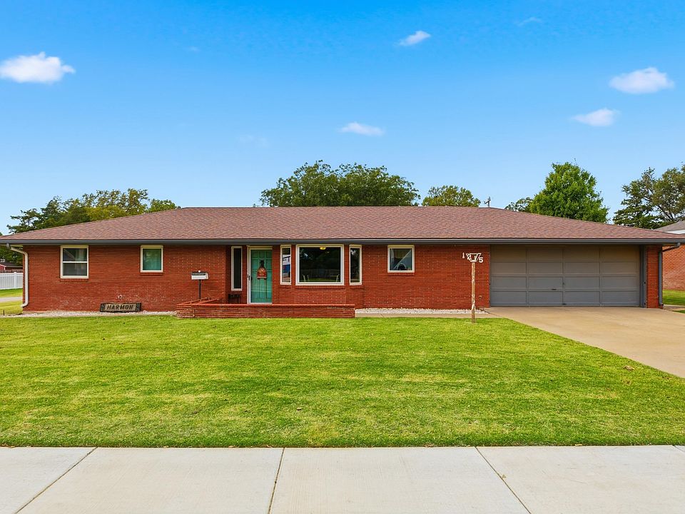 Charming and solid brick home with great curb appeal in the heart of Cherokee. This 3 bedroom, 2 bathroom home offers 1,377 square feet of comfortable living space with updates throughout. Enjoy a spacious living room with a large window, a kitchen featuring a built-in china hutch, electric cooktop, and wall oven. You’ll appreciate the ample closets and built-in storage throughout the home. Tile wood-look flooring and carpet plus newer windows. The two-car attached garage provides additional storage and features a gas wall heater, making it a cozy hangout spot year-round. Home also features a large fenced backyard, guttering, and a clean basement/storm cellar. Refrigerator, dishwasher, oven, and cooktop included. Convenient location near schools, downtown, and local amenities. For buyers looking for convenience, the home can also be purchased fully furnished for an additional price — making it an easy move-in option for a first-time buyer, downsizer, or investor.
