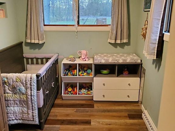 Welcome to Trail Creek. Presenting you with this 3 bed 1.5 bath home that boasts an ample amount of storage throughout its entirety. Starting in the hallway with the pulldown attic ladder which gives easy access to plywood laid across the ceiling joist so you can put those holiday totes away for the season. Full bathroom has a newer installed jet tub to soak in and massage you after that long work day, not to mention the his and her vanity/sink. Within the bedrooms you will notice recessed shelves for books or knick knacks of any sort. Basement, is partially finished with newly installed Hot Water Heater and Sump Pump, just added this year. Heading out the backdoor you're greeted with the sunroom for a little relaxation. Once outside you will notice that there are 2 driveways; one on the side of the home and the other that leads to the detached garage. Also, this is one of the fewer Trail Creek homes that is connected to Municipal Water and Sewer.