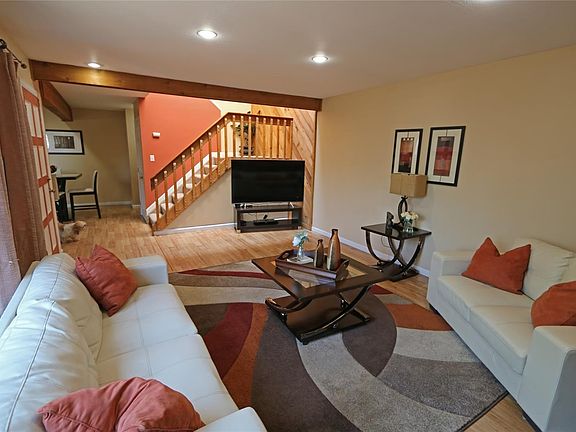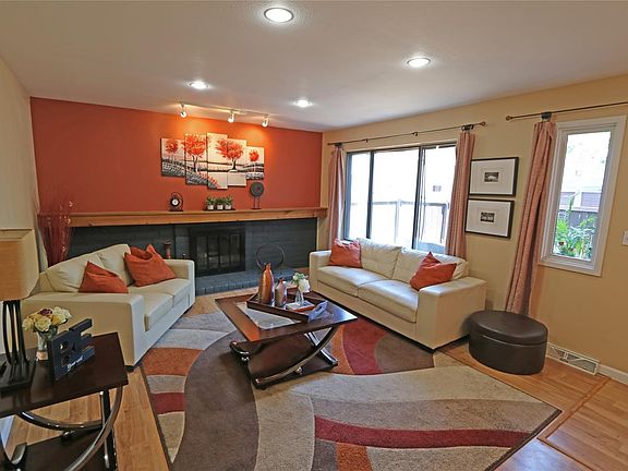 Open and contemporary end-unit townhome in a perfect location with great access to everything. Located in the Cherry Creek School District, this home has been updated and is ready to enjoy. New carpet, new flooring, new stainless steel appliances, new roof, newer paint, newer furnace, Nest thermostat & newer hot water heater. The bright main floor has a big family room with brick fireplace and large picture windows, casual dining space, half bath and open kitchen. There are sliding doors that lead to a private fenced patio and small yard that provides a great place for entertaining and safe place for children and pets. The upper level is open with skylights and a vaulted staircase. There are 2 large bedrooms on the upper floor and a very spacious and inviting 4 piece bath. The large basement has 2 distinct spaces, a large laundry/ utility/storage area and a perfect spot for a family room/rec room. The big surprise is the built-in sauna. Don't forget the detached 1-car garage.