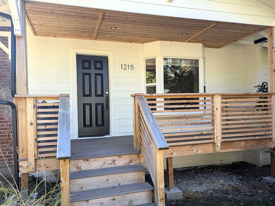 Welcome to your charming upstairs retreat! This newly remodeled 2-bedroom, 2-bathroom house offers 950 sq ft of modern living space. Step onto the large porch, perfect for morning coffee or evening relaxation, and enter a beautifully updated interior featuring a full kitchen with sleek countertops, stainless steel appliances, and mini-split climate control. Enjoy the fresh, open layout with brand-new finishes and luxury vinyl flooring throughout. Ideal for those seeking a cozy yet contemporary home. Available now don't miss out!