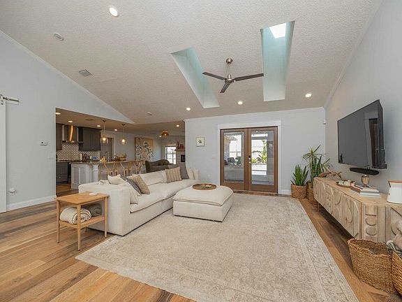This distinctive home, nestled under the oaks bordering Anastasia State Park, has been beautifully completed with modern touches. No expense spared with designer elements such as batten walls, crown molding, artistic doors, unique light fixtures and gorgeous cedar fireplace mantle. The open floor plan offers a spot for everyone to call their own. The formal and casual living spaces, covered lanai and paver fire pit patio provides room for everyone to spread out and relax. Chef's will love creating in the kitchen complete with granite countertops/ back splash, stunning cabinetry, farm sink and stainless appliance package. The owners retreat is tucked away from the guest bedrooms offering the perfect spot to relax at the end of the day. The ensuite bath features a statement soaker tub, oversized shower, and dual vanities. Other features include: PTG hurricane windows; landscaping; cedar tongue and grove porch ceilings; contemporary bathrooms; and so much more! The 2-car garage offers plenty of storage for beach gear while the outdoor shower allows you to rinse off the salt after a day at the beach. Located on a cul de sac in the quiet neighborhood of San Jose Forest, this home is an easy walk or bike ride to the local Amphitheater to enjoy concerts/ farmers market; historic downtown St. Augustine; beaches and popular area restaurants. This unique neighborhood and surrounding streets have a private gate to access the state park beach. Not to mention, the St. Augustine Beach pier is a short bike-ride or 5-minute drive away. This incredible home and desirable location is waiting for you!