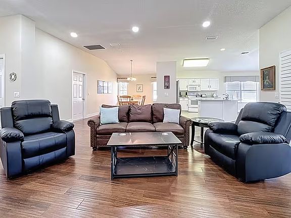 Rent is $2,880/month, with no deposit required. A minimum of 1-month rent and a one-time cleaning fee of $200, is due at time of signing the lease. A one-time fee of $50 if you want to access to all the 50+ golf courses while you are living here. Minimum rental is 1-month. The house is turn-key/move-in ready. It has everything essentially for a comfortable living in the Villages, including all furnitures, linen & towels, TVs, Internet connection, coffee, ... It is like a home away from home, welcoming you to enjoy! It has a golf cart for you to drive locally and to play golf.