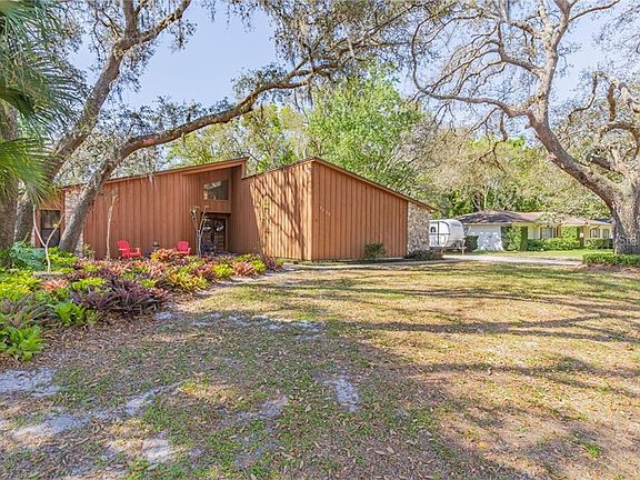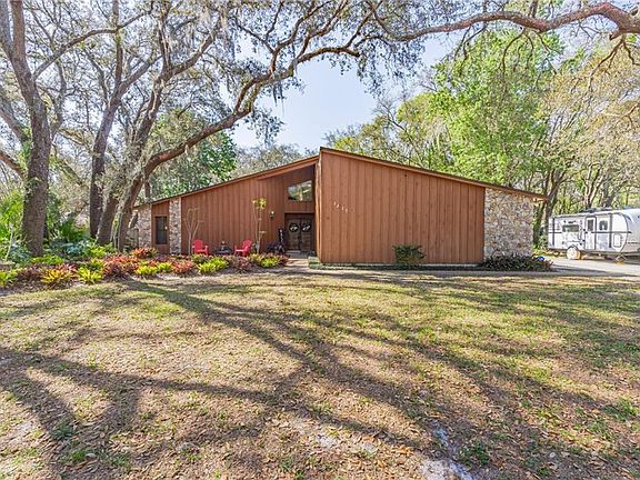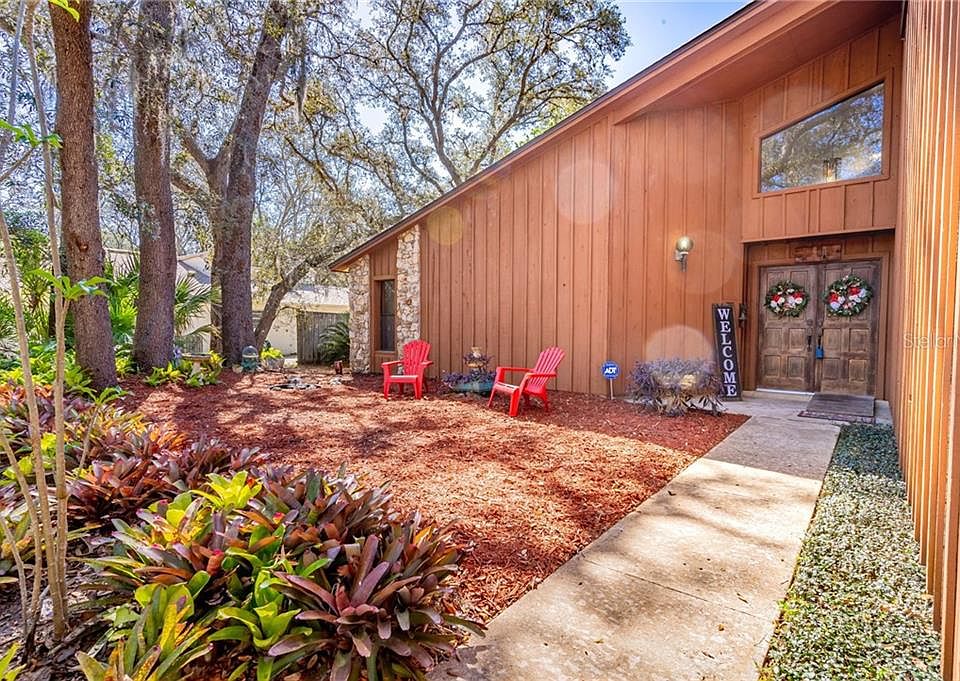 Take a drive down streets shaded by majestic Florida Oak trees, wave to the friendly you'll soon call your neighbors, and see for yourself all this unique and incredible home has to offer! Situated on a spacious and private lot, this home sports a unique architecture that blends modern and farmhouse styles; the partially-fenced yard is a wide-open area in the shade of neighboring trees, making it the perfect place to relax and play on warm summer days! The interior features soaring volume ceilings, an open floor plan, large windows and skylights to brighten and liven up the space. Just off the kitchen, the cozy family room features a stone wall, wood-burning fireplace and a sliding glass door leading out to a partially-enclosed atrium. If landscaping or gardening is a hobby of yours, you'll love creating your very own view outside your window! The atrium connects to the screened-in patio, which affords ample space for entertaining guests. Your guests will also enjoy a SECOND screened-in patio which features a built-in hot tub! Heading back inside, you'll find a gorgeous formal dining area which connects directly to the kitchen via a server window. Each bedroom in this home boasts ample space for furniture as well as plenty of natural light. And the surprises keep on coming: up the stairs you'll find a cozy loft with angled ceilings. This is a perfect space for whatever your imagination conjures up! This home just has too many amazing features to list! Call today and come see for yourself, this one won't last long!