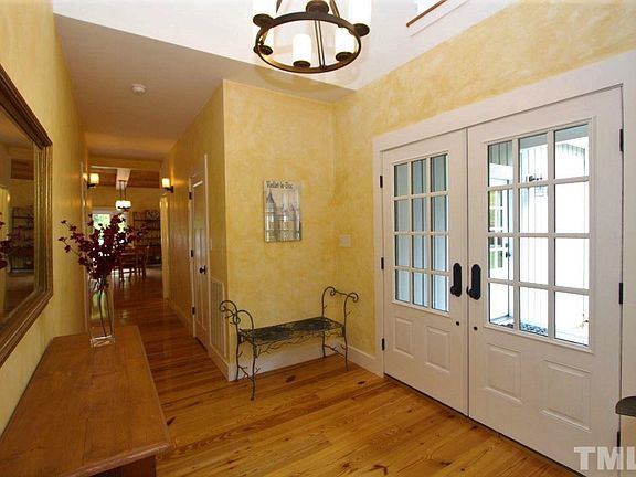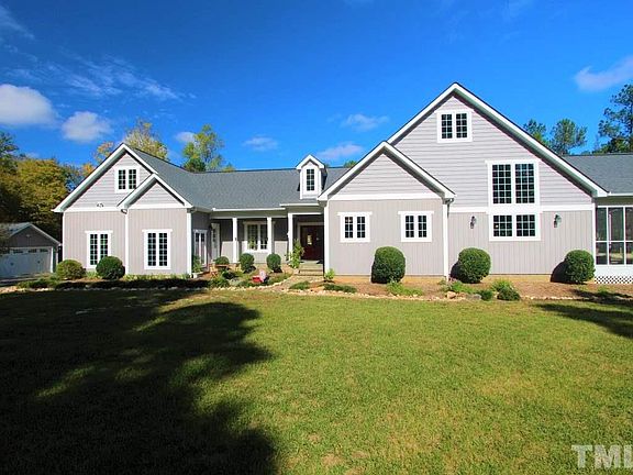 Very Open Floorplan! Soaring wood ceilings with beams, heart pine floors, tiled wet areas, an abundance of custom cabinetry and mouldings, specialty lighting, double sided stone fireplace soars to the vaulted ceiling, inviting breakfast bar area overlooks ample countertop kitchen area, LOTS of windows for natural light, A MUST SEE utility room! Multiple French doors leading out to private 54' deck and screened porch surrounded by woods with fenced garden area, hot tub, chicken coop, pole barn, det. gar.