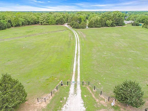Peaceful privacy best describes this 2016 lrg brick home on 12.46 acres w pond, creek, rolling terrain, fenced & full of wildlife! Home sits back in trees unseen from rd. Elec gated pipe fence entry, drive in overlooking stocked pond w pier, hay pastures, to lrg home once a B&B w all the charm. Open LR, dining & kitchen w granite counters, tiled backsplash, custom cabinets, SS appliances, fridge stays, large island brkfst bar & kitchen window w woodsy view. Sep master suite, w French door enclosed office, lrg mstr bath w tiled XL shower, & walk in closet w shelving. Utility mud room off oversized garage has a sink, cabinets & plenty of room for freezer, xtra fridge. Sit in sunroom or on the covered back porch & watch the deer graze. Storage container barn, Prvt area RV hookups w SEPTIC & tower, deep well on aquifer no water bill, best water. Sprinkler syst, 2022 var spd HVAC, spray foam insulation, hot tub on b porch stays. Bring your horses. Desired Edgewood Schools! No flood plain.