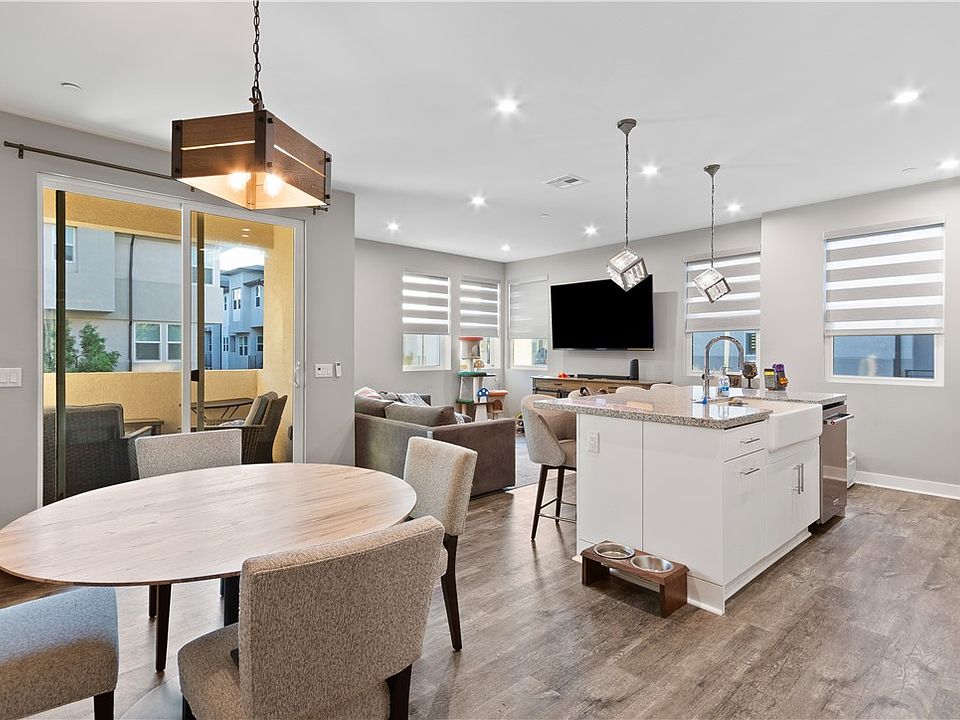 Welcome Home to your stunning three-story, end unit, 2024 build that perfectly blends style, comfort, and convenience. From the moment you enter, the open floor plan and recessed lighting create an airy, sophisticated atmosphere. Enjoy the convenience of a half bath, kitchen, living room, and dining area on one level. The brand new KitchenAid appliances gleam beneath sleek finishes, ready for your first dinner party or that late night snack run after catching a game at Angel Stadium or fireworks from Disneyland. When you are ready to retreat for the night, the top level has three bedrooms and two baths, giving ample room for every family member.