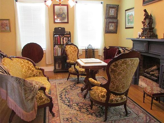 This home is truly at time-piece with modern features combined with the yesteryear feel. This Historic Beauty has 3 Bedrooms, 1 Full Bath and 1 half bath. The main floor bedroom is being used as a family room. This home has 3 fireplaces (2 gas and 1 wood). Two bedrooms have a fireplace & a fireplace in the living room. Lovely kitchen great for entertaining with the Dining Room just steps away. Appliances will stay including the Wi-Fi Fridge. The half bath & laundry room is on first floor & the washer & dryer stay! If you love the outdoors, the yard is huge! 2 car detached garage or a workshop/man cave, and a 2 car Carport which half is being used for a gathering area with twinkly lights and a brick wood heater/BBQ. A fenced area for pets and a small shed that could be a playhouse, or store outdoor equipment. The basement is unfinished, with a stand in shower, toilet and sink with storage galore. There is so much house/outdoor areas for entertaining or just enjoy the quiet gardens.
