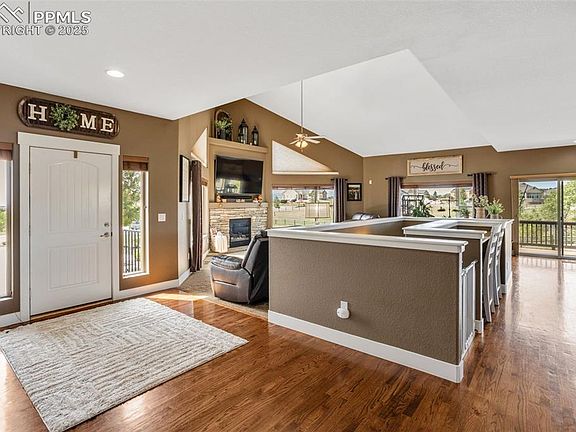 This magnificent home was featured in the 2013 HBA Parade of Homes! The Lot is huge - over an acre! The views you get of the Mountain range from the deck and Great room are breathtaking! Upon entering this custom home you are greeted with beautiful hardwood floors, custom paint and an open floor plan. The living room features vaulted ceilings and a gas fireplace. The gourmet kitchen features granite countertops, stainless steel appliances, a huge island, soft closing undermount cabinet drawers, loads of storage, roll-out pantry shelving, etc... The main level has a spacious Master suite with a 5 piece bath and walk-in closet. There are 2 additional bedrooms on the main floor and a full bath. The laundry/mud room offers built-ins and a sitting area/drop zone. The finished walk-out basement features 9 ft. ceilings, wet bar and a pre-wired media room with speakers. There is a full bath 4th bedroom and a 5th bedroom which is also a second master bedroom with a walk-in closet and its own adjoining bath. The huge oversized garage has hot and cold water, built-in storage and is large enough for 5 cars, or 4 cars and a workshop. Enjoy the spacious backyard that backs to open space and trails. You won't feel crowded here! There is also a large shed, covered deck, custom patio work, permanent exterior holiday lighting system, basketball court and auto sprinkler system. This yard is made for enjoying the outdoors and entertaining. This home would make a great multigenerational home.
