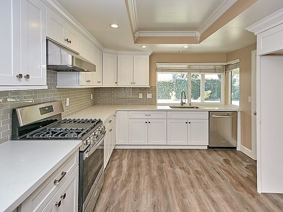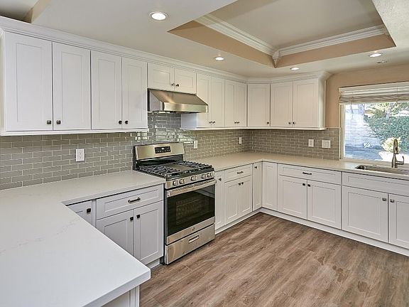 Beautiful Porter Ranch 1 story home near 2.200 sqt with spacious rooms and an open floor plan. Large Master Suit and Living Room with conversation area and floor to ceiling fireplace. Family room and dining area open into the kitchen, **Several upgrades Kitchen Cabinet,Appliance,Quartz Countertop.Backsplash Tiles) Waterproof Flooring,Bathrooms Cabinet,Vanity,Shower Boot,Countertoplight,faucet... Doors. Newer Recessed Lights, Windows. Roof, A/C**. The back yard features a huge covered patio, grass play area and mountain views. This home is located in a queit and wonderful neighborhood with great schools, and there are parks and hiking trails nearby. Castle bay elementary, Granada High school Owner pays gardenig service.
