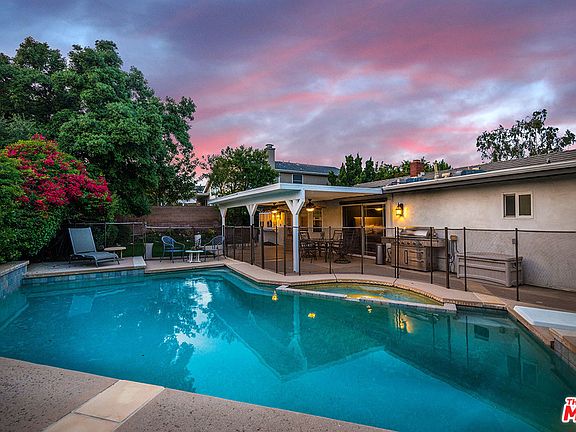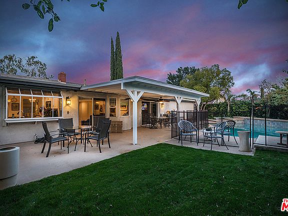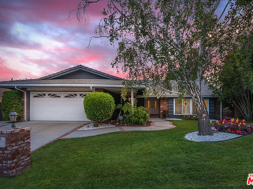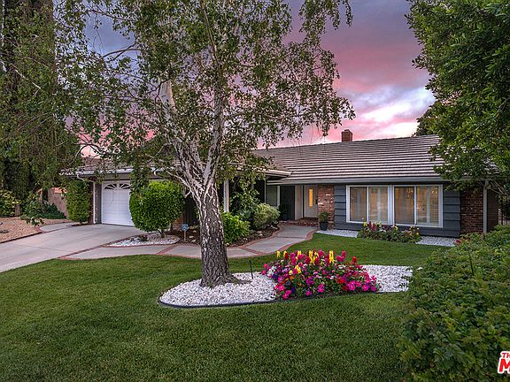 Porter Ranch jewel. Live & play surrounded by the Santa Susana Mtns. Close to Porter Valley Country Club & golf course. Move-in ready, lovingly maintained updated rancher. Wake up to a sunny kitchen with stainless steel appliances, beautiful cabinetry, custom mosaic tile & built-in breakfast nook. Greet guests in an elegant step-down living room with cathedral ceiling. Entertain in formal dining room with brick fireplace & marble tile. Large master retreat offers built-in shelving, ribbon glass & private access to pool/spa. Remodeled en suite for two! Enjoy steam shower & Euro style towel warmer. Gather in family den with hardwood floors, window seat & doors to fenced heated pool/spa & grassy play area. Relax outdoors under the comfort of ceiling fans on spacious cov'd patio. Tap into your smartphone to control high tech Nest system. This family-friendly community is near great schools, park, upscale shopping, salons, dining & fwy access.