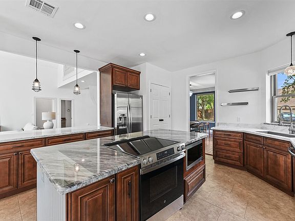 Energy Corridor large two story, three bedroom home offers a grand entry leading into the family room with a cathedral ceiling and brick fireplace. The updated kitchen features a central island, granite countertops, stainless steel appliances and a breakfast room. The primary suite has two sinks, a sitting area plus a freestanding tub and separate shower with a fabulous walk-in closet. Upstairs you'll find two additional bedrooms with a Jack-and-Jill bath plus a game room. Set on a large lot, the backyard includes a covered patio-perfect for entertaining or relaxing.
