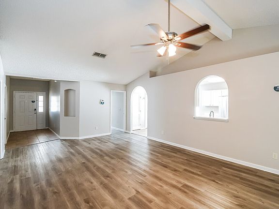 You'll adore this Jacksonville rental home with four bedrooms and two baths in 1,897 square feet. Entertain friends and family in the enormous central living room, which has a classical corner fireplace, a ceiling fan to beat the Florida heat, and doors to the screened patio. Cooks will appreciate the sunny eat-in kitchen's storage space and labor-saving features such as a double sink and stainless steel appliances. You'll enjoy the meals you create beneath the dining room's glass-shaded chandelier. Find the primary bedroom at the front of the house. Its walk-in closet is roomy enough to banish all clutter, while the bright and luxurious en-suite gives you privacy. Schedule a tour of this rental home today.