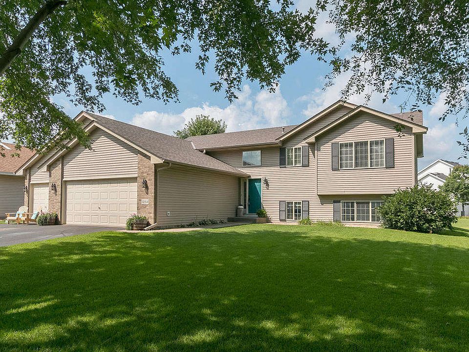Spectacular split finished top to bottom will show & sell! Charming decor throughout and loaded with 5 BRs, 3 BAs, den/office, vaulted main level, great open floor plan, laminate flooring, angled breakfast bar, SS appliances, 23 x 14 deck w/stairs off dining area, partially finished laundry, white woodwork, spacious entry & finished lower level family room with daylight windows. All this plus 3 car garage, central air, air exchanger, maint free exterior & walking distance to nearby park. HURRY!, Directions Hwy 10 to 242; E to Shenandoah; S. to 123rd; W to Partridge; N to 124th; W to Raven; S to 123rd; W to Thrush; S to Home on R.