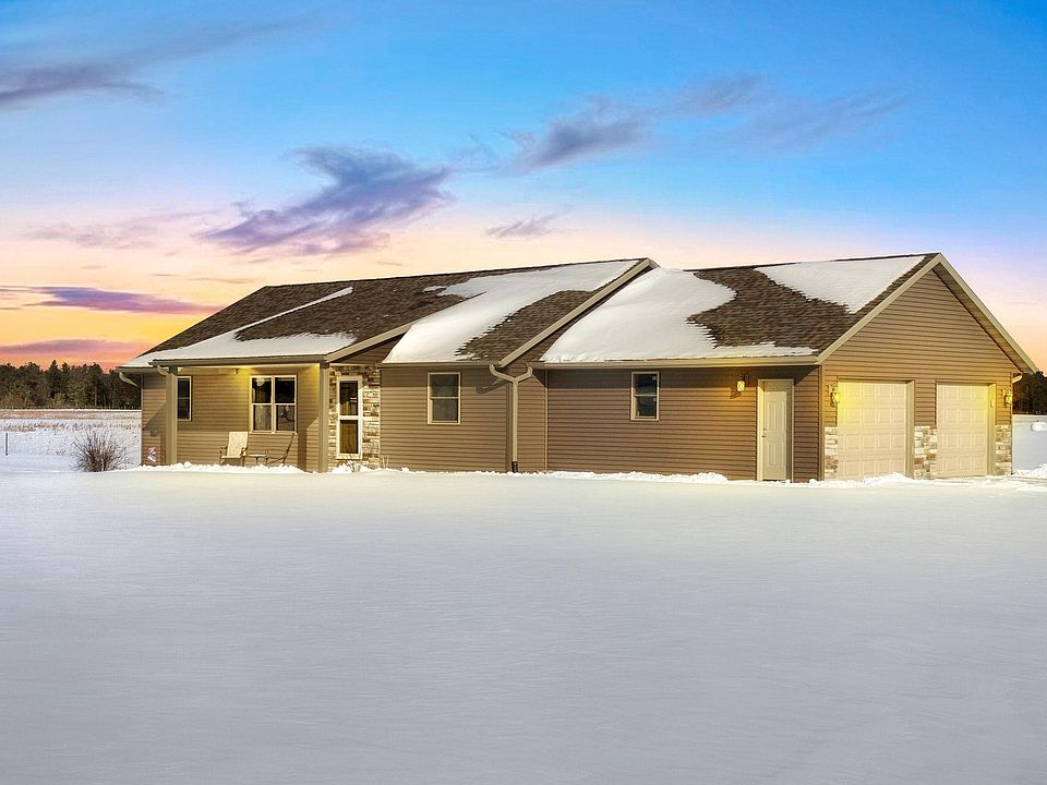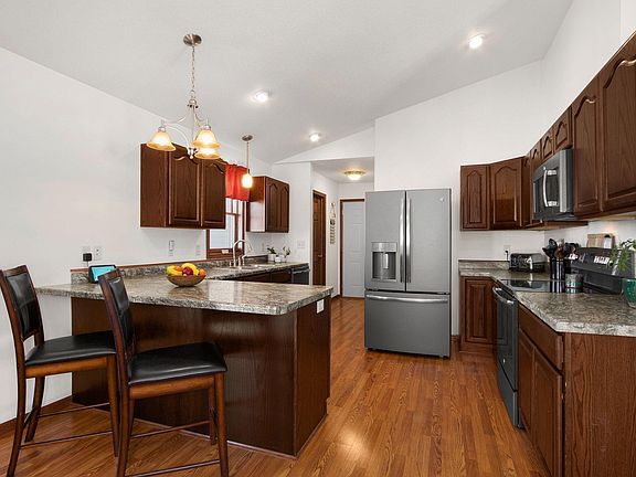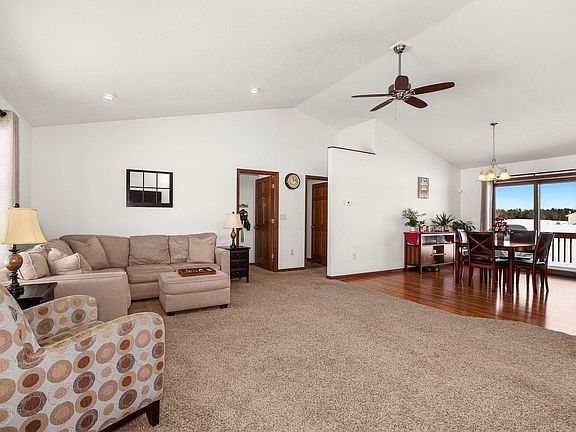 4 Bedroom, 3 bath home with open concept floorplan, vaulted, recessed lights, ceiling fan, large picture window for lots of natural light. The kitchen has dark gray stainless steel appliances, pantry, breakfast bar and loads of cabinet space. The informal dinning room walks out to the deck, great for entertaining! The Mater bedroom has his and her closets plus and additional closet for extra storage, 3/4 bath with double sinks. The laundry room and two additional bedrooms, and a full bath complete this level. The lower level features a large family room, exercise room, bedroom, bath room and storage room. The garage is insulated, sheet rocked, floor drain and service door. Located on a 1.56 acre lot!