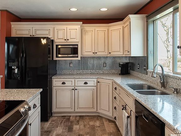 Meticulously maintained barn red 1 1/2 level country home on paved roads all but last 1/2 mile! On 7.8 acres w/fenced areas, outbuildings, beautiful pool. Kitchen has quartz countertops, island, storage. Island bar + separate dining area! Vaulted ceiling in great rm w/cozy fireplace. Primary + 1 bed & laundry/mudroom on main. Double closets. 2nd level has 2 beds, bath, study/craft room & loft office. Bsmt rec rm w/pool table (it stays), poker table/gaming areas, and a bath. Mins to Clinton & Lone Star! 2022-02-01