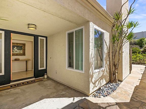Experience the charm and comfort of this stunning single-story home, perfectly situated within the gated Fairway Heights North community of Rancho Bernardo. Positioned on the highest street with no rear neighbors, this home offers many upgrades such a newer roof and an unmatched level of privacy. As you enter, you're welcomed by soaring vaulted ceilings in the living room, where natural light pours in, highlighting a cozy fireplace that anchors the space. The kitchen features upgraded maple cabinetry, sleek granite countertops, and stainless steel appliances, along with abundant storage. A delightful sunroom, complete with a skylight and retractable shade, provides additional living space and architectural flair, making it the perfect spot to unwind. The tranquil primary suite is a true retreat, offering a spacious bedroom with newer flooring, a walk-in closet, and a recently remodeled ensuite bathroom, designed as a personal oasis. Other notable upgrades include newer flooring in the second bedroom, freshly painted living room and a beautifully renovated guest bathroom. Outside, the low-maintenance backyard is ideal for al fresco dining and entertaining. Residents of this home will enjoy access and to the top-rated Poway Unified School District, with no Mello-Roos fees. The HOA covers front yard maintenance and includes membership to the Bernardo Heights Community Recreation Center, offering pools, tennis courts, and a clubhouse. Conveniently located close to the schools, shopping, dining and freeway access. This home combines luxury, convenience, and a prime location. Don’t miss out on this exceptional opportunity!