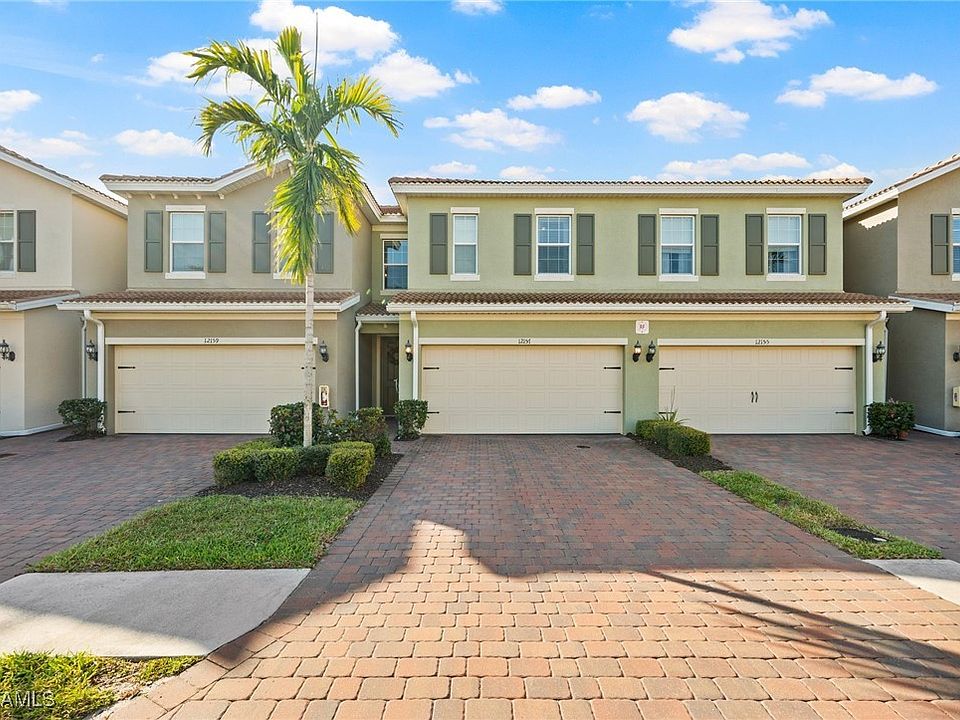 Spacious and Modern Townhouse with 2-CAR GARAGE in the gated Hammock Cove community at Gateway. Main level features a guest half bath near the entry and all tile flooring, stainless steel appliances, a sprawling kitchen with granite countertops, and premium white cabinetry with finished end panels and wood doors. Plus, there's loads of storage with under-stairs step-in closet and two flex spaces for pantry or closet off the kitchen. The cozy upstairs has premium carpet and features the large primary bedroom with two walk-in closets and ensuite bathroom, a spacious laundry room with new front-load washer and dryer, and two guest bedrooms which share a full guest bath. There are 6 guest parking spaces located across from this building which is extremely convenient, plus you have a 2-car wide brick paver driveway... so you can invite all the guys over for the big game! This perfect location puts you a short distance from the Hammock Cove neighborhood pool and is conveniently located close to I-75, RSW Airport, Red Sox and Twins Stadiums, Restaurants, Shopping, Churches and Hospital. Hammock Cove is pet-friendly and has low HOA fees that pay for your high speed internet, cable TV, community pool, gated entrance and landscaping. You can also join GATEWAY GREENS (optional) which is a larger amenity center offering golf, tennis, pickleball, basketball, fitness center, resort style pool, restaurant, and so much more. What a fantastic home at an affordable price! Call today to schedule your private showing today!