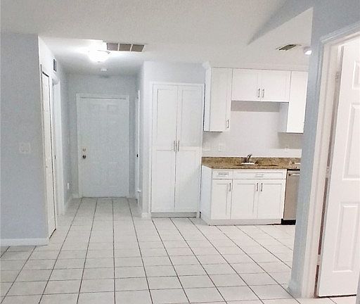 Kitchen complete with granite counter tops, modern white shaker style cabinetry updated in 2023, new microwave 2025. Both bathrooms have been updated with brand new vanities in 2023. Tile throughout the entire property, offering a clean, durable, and elegant touch.
