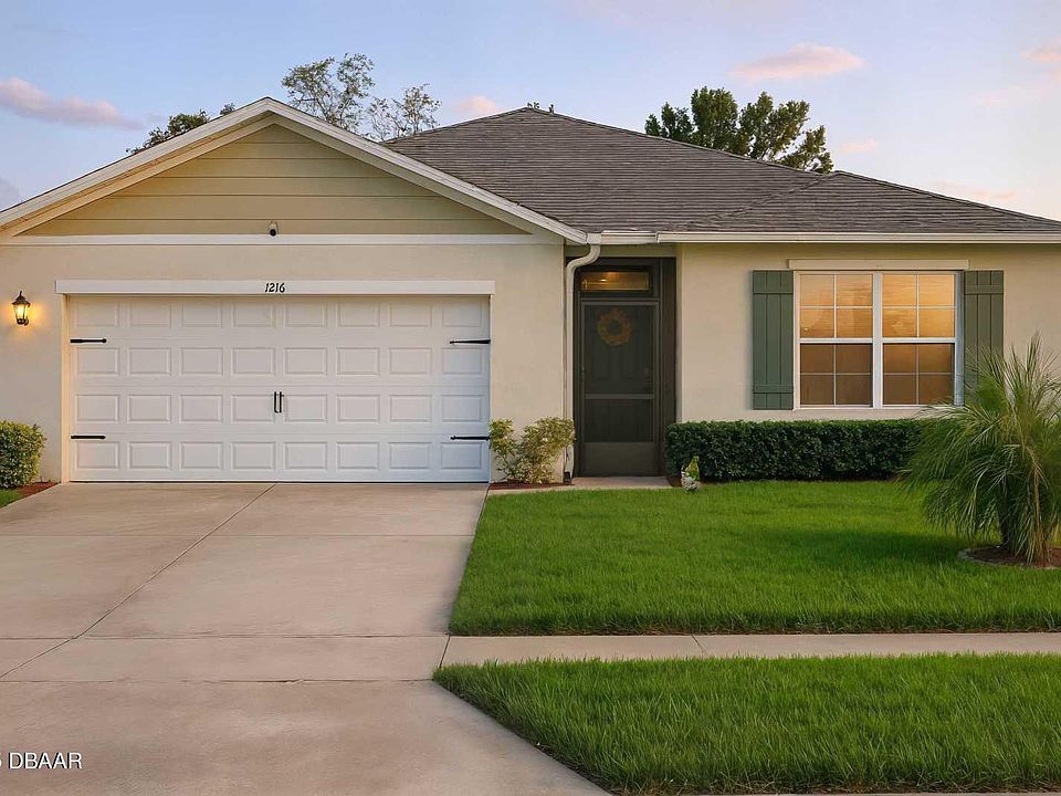 Welcome to 1216 August Sky Drive: a beautifully move-in ready 4-bedroom, 2-bath ranch that blends comfort, convenience, and smart living. Ideally located near Pell's Nursery and Feelgood Winery, the property also connects to the Coast-to-Coast Trail with access to Gemini Springs—perfect for outdoor enthusiasts. Interior features include tile flooring throughout (NO carpet), a safe in the master closet, upgraded glass doors on the master bathtub, added garage insulation, and a full smart home setup. The ADT security system ready for activation. Cameras at the front door, garage, and rear lanai. MyQ smart garage system include. All appliances convey, including a range with built-in air fryer. Furniture includes living room, office, lanai, and entry table. Brita whole-house water filtration system with 3 years of supplies/ transferable warranty, full perimeter irrigation system, Lennox A/C, screened front door and back lanai. Schedule showing!